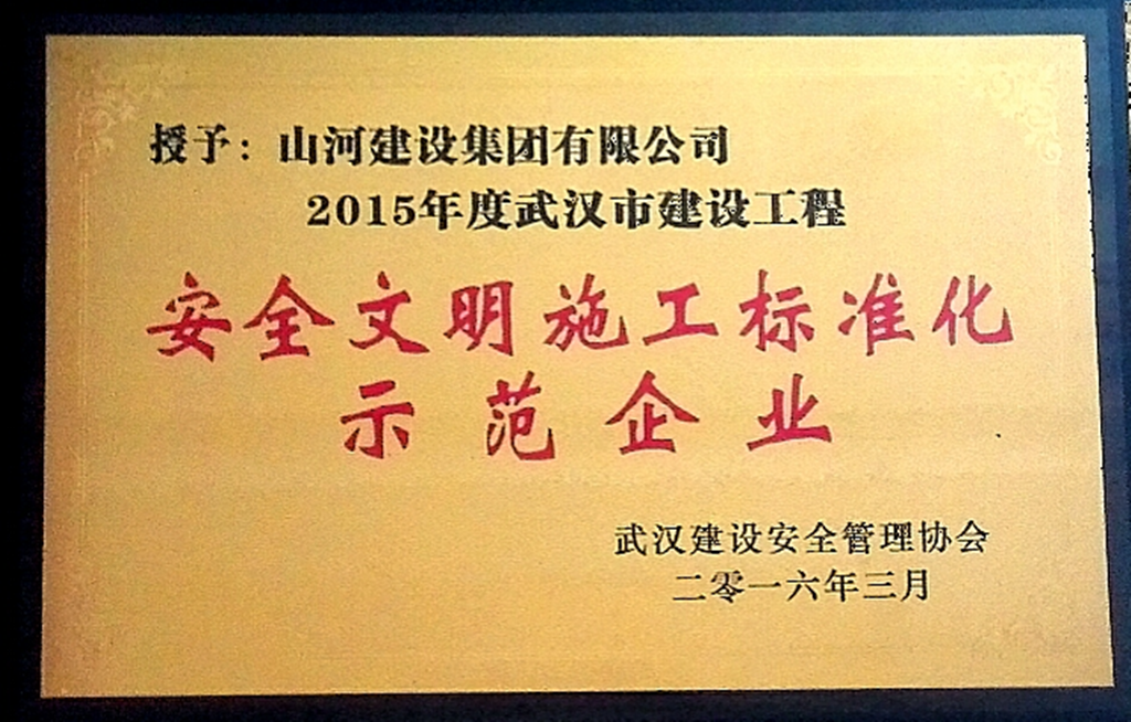 3月2日,武汉市建筑安全管理协会召开了第二届二次理事大会暨会员大会。山河集团荣获“2015年度武汉市建筑施工安全标准化示范企业”称号,承建的万科长征村K3地块项目荣获全国“AAA级安全文明标准工地”称号。