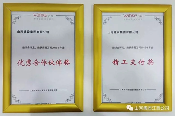 近年来,山河集团始终坚持以高品质、高标准、高要求进行施工管理。此次获奖,奠定万科优秀合作伙伴的基础,承载万科对山河集团的认可和信任,激励全体山河人坚持“筑品质山河 成百年基业”的企业愿景,为业主提供更加优质的产品与服务!