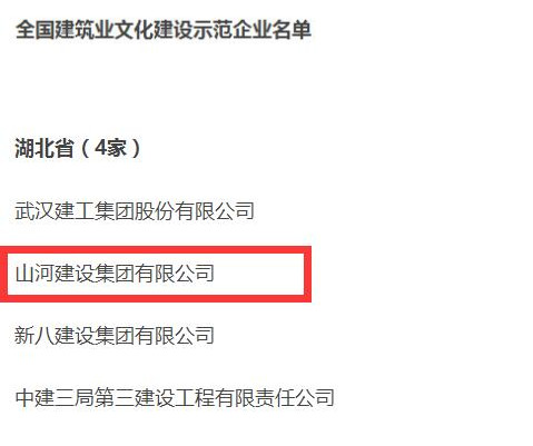 山河集团获评全国建筑业文化建设示范单位