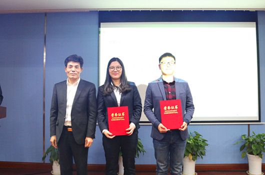 ▲一等奖获奖代表与集团领导合影
