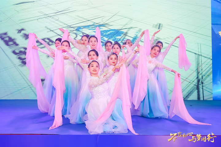 现场齐声倒计时过后,伴随着动人的音乐声,寄托着深深祝福的开场舞《筑梦》拉开了年会的序幕。